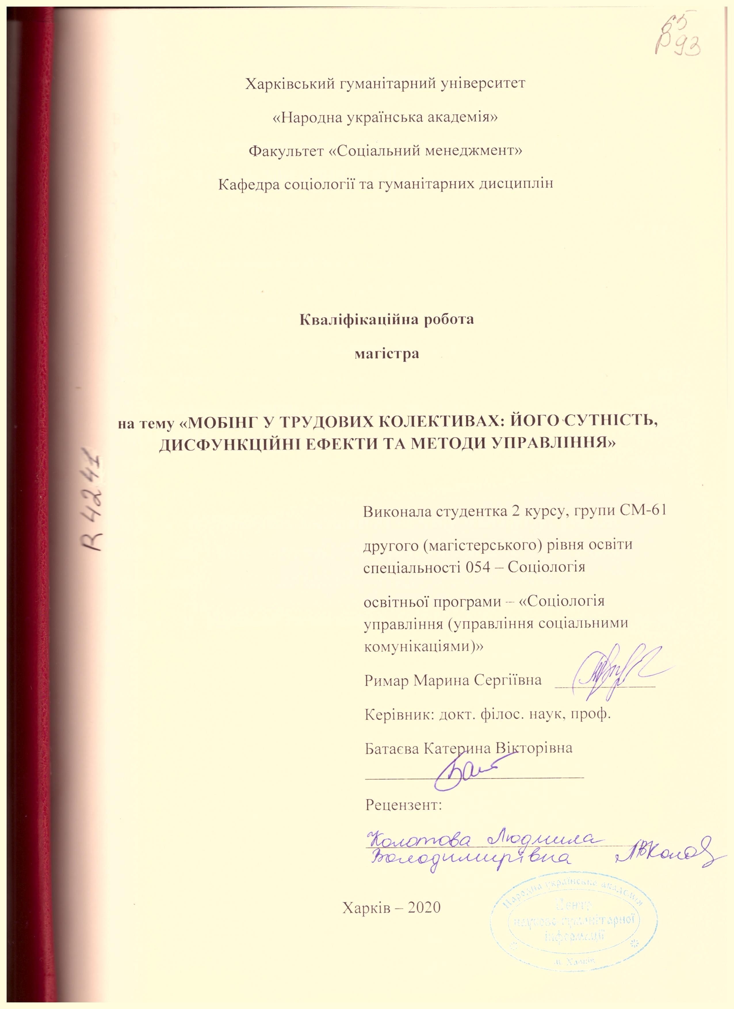 | Ключевые слова: | магістри кваліфікаційні роботи соціологи СМ мобінг |