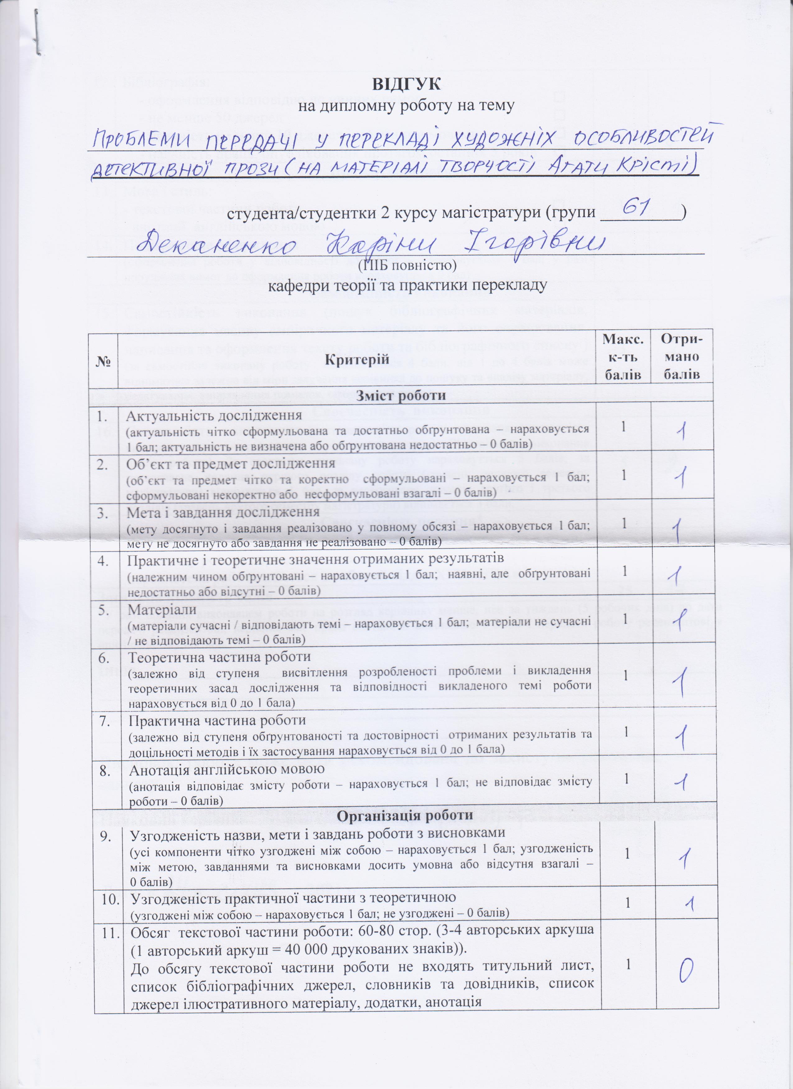 | Название: | Проблеми передачі у перекладі художніх особливостей англомовної детективної прози (на матеріалі творчості Агати Крісті) |