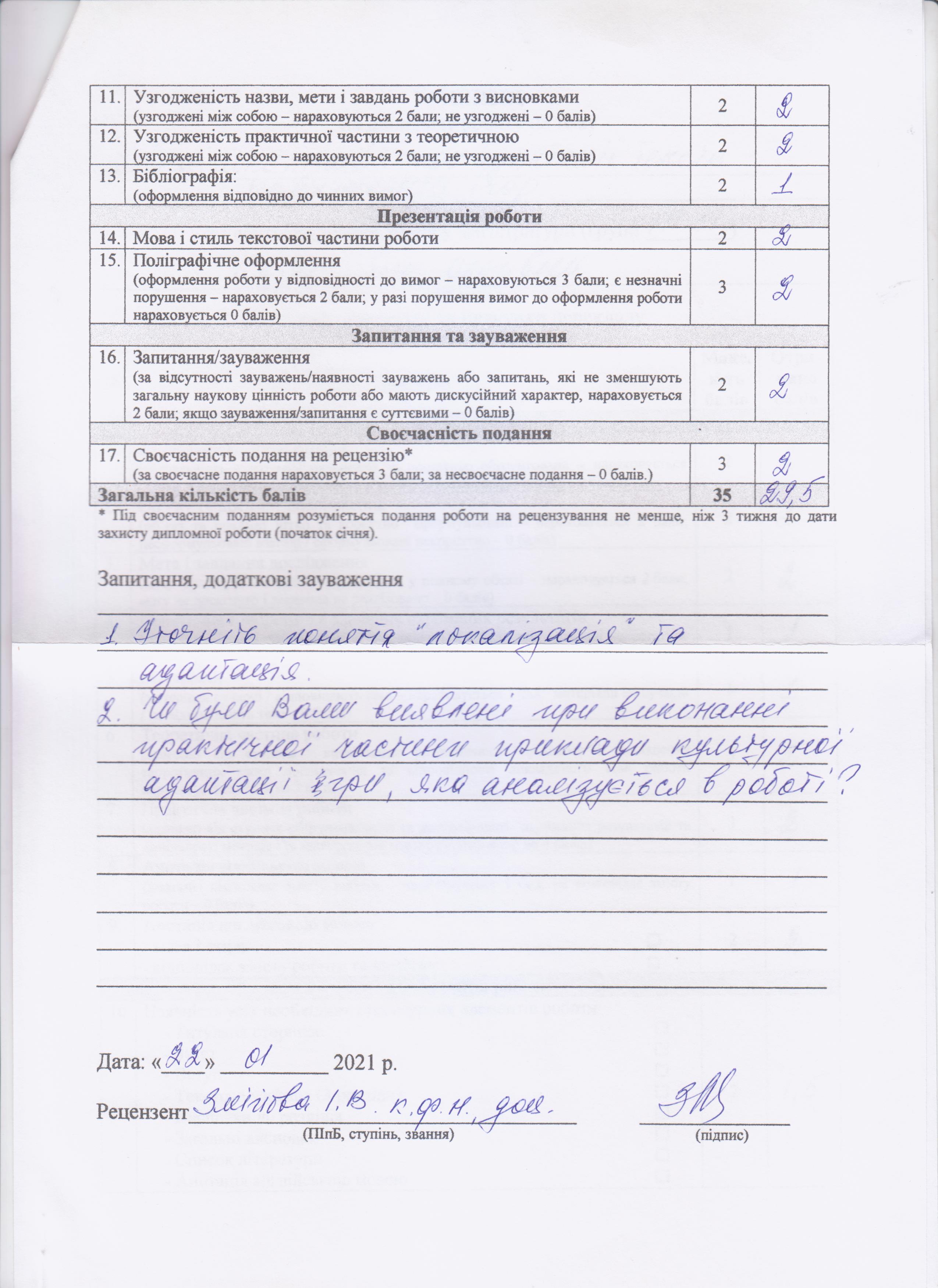 | Библиографическое описание: | Казак, Я. О. (2021). Мовна локалізація при адаптації текста комп’ютерних ігор. Харків: ХГУ «НУА». |